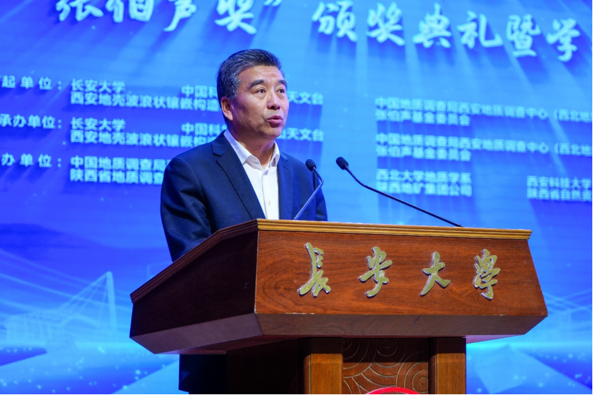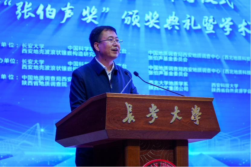 会议颁奖阶段,中国地质调查局西安地质调查中心副主任计文化致辞,他强调了在张伯声科学精神激励下,推进地质找矿与科技创新的重要意义